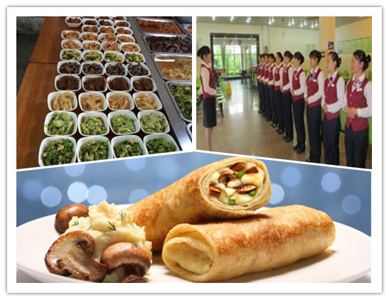 菜品搭配由營養師及廚師長合作進行,保證菜肴的色、香、味、形和營養價值。